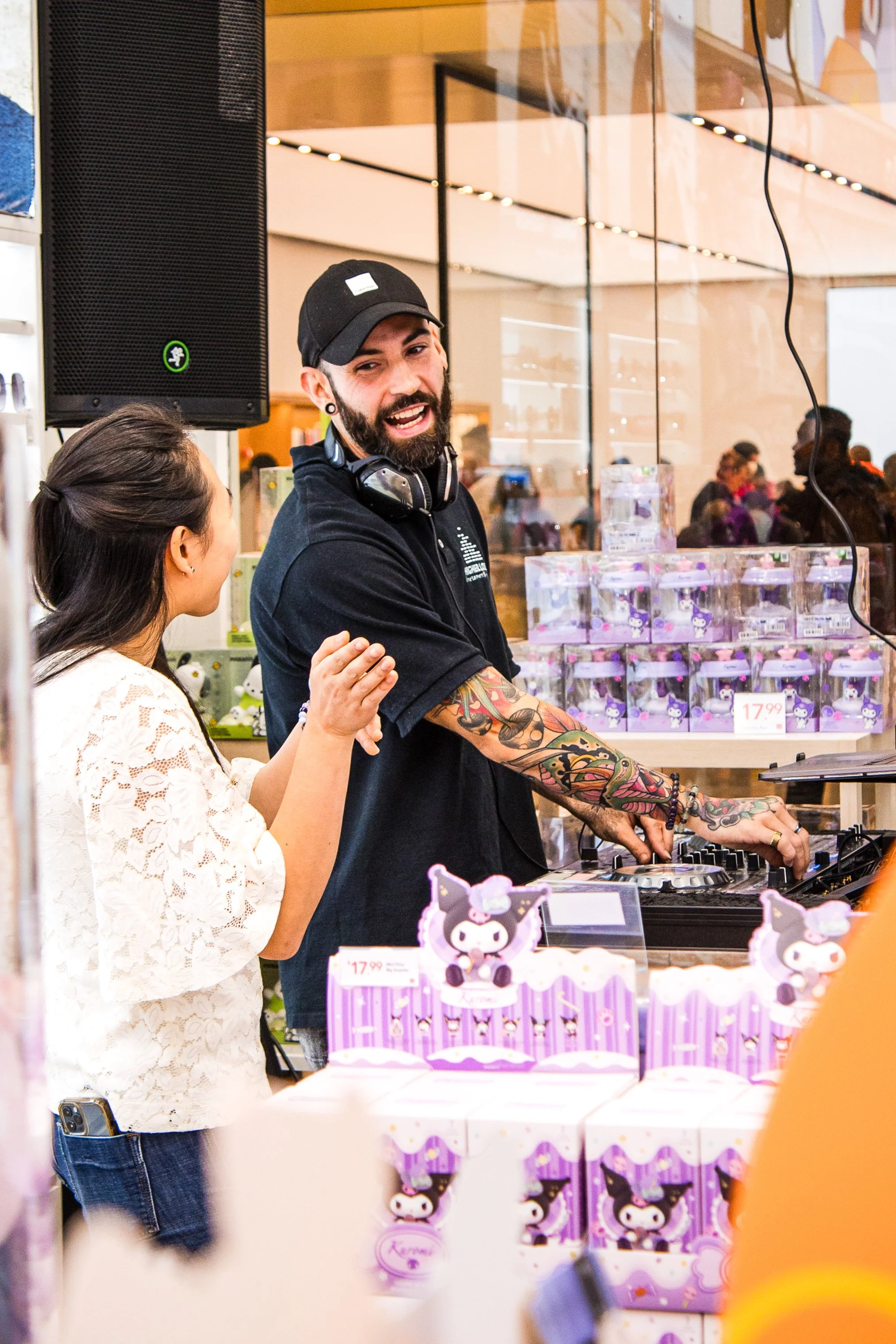Higher Love Entertainment DJ Brockley at store grand opening inside Orland Park Mall in Chicago, Illinois